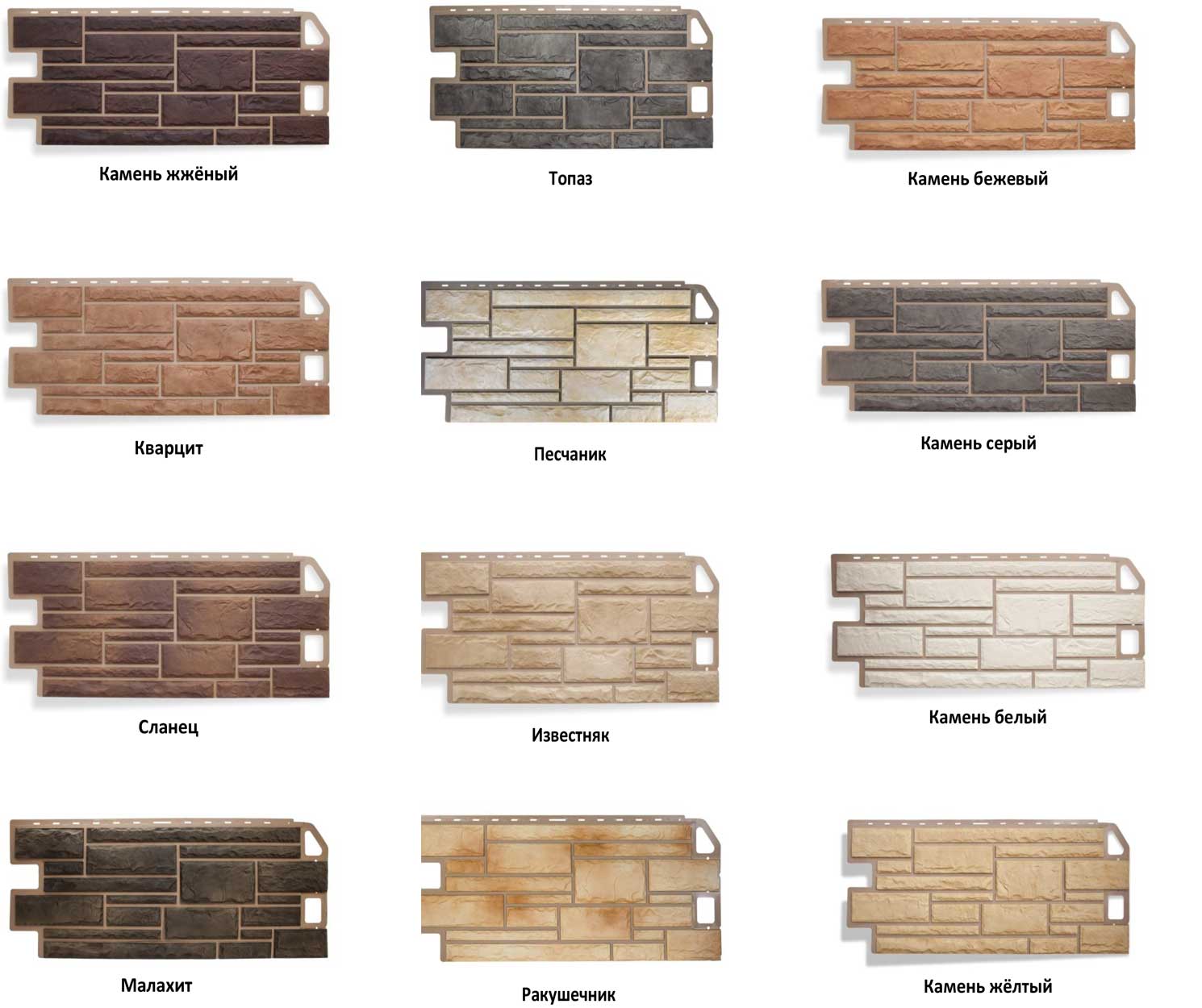 Панели КАМЕНЬ представлены в 12 оттенках, которые идеально сочетаются между собой: